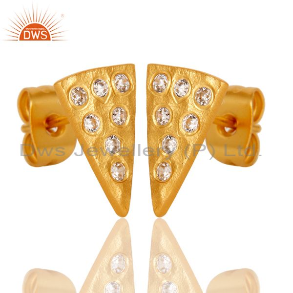 Traditional Design 18k Gold Plated with White Zircon Brass Earrings Jewellery