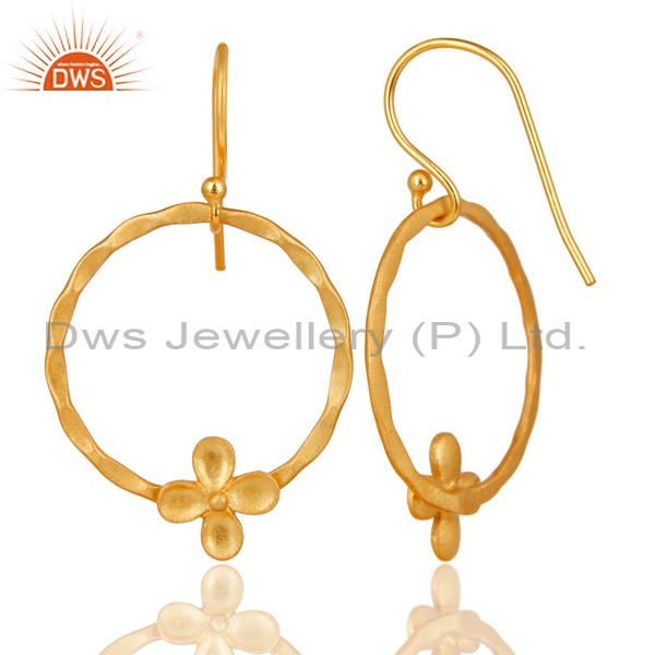 Traditional Handmade Flower Design Brass Earrings Made In 14K Gold Plated