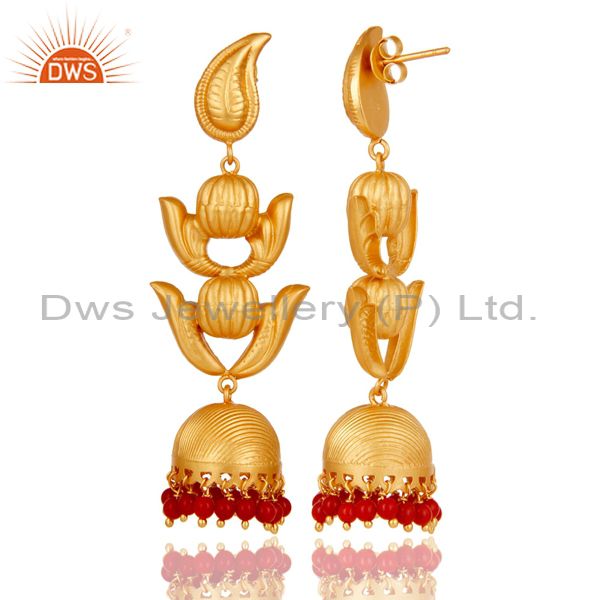 Traditional Jhumka Earring with 18K Gold Plated Sterling Silver and Coral