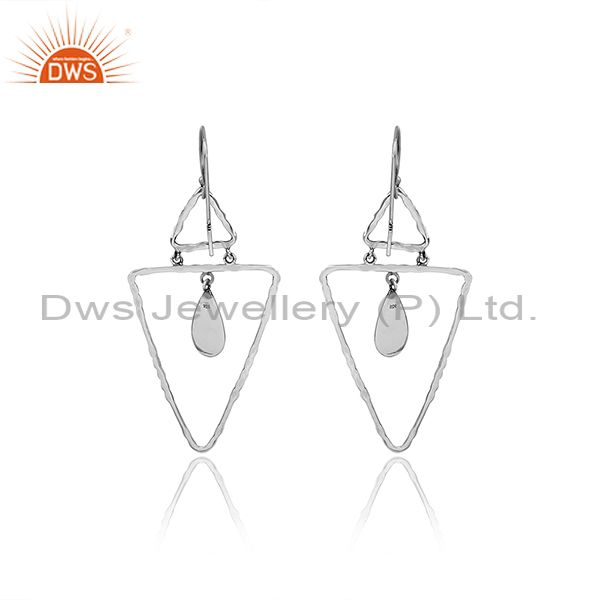 Triangular Textured Oxidized Silver Geometric Drop Earrings
