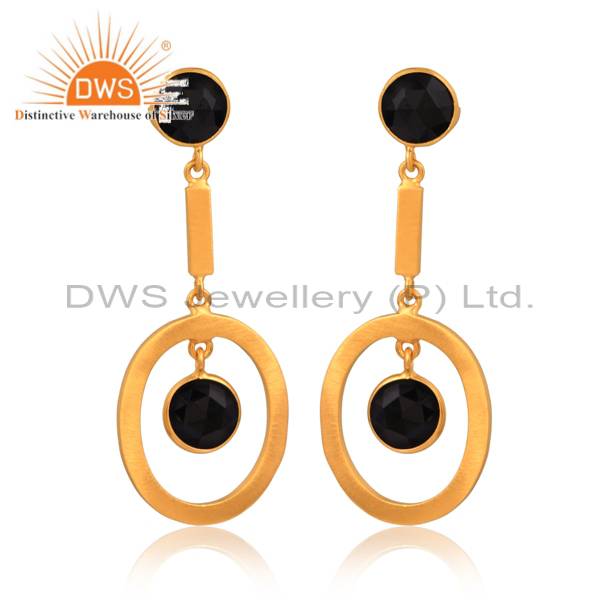 Unique And Elegant Style: Stunning Black Onyx Brass Earrings