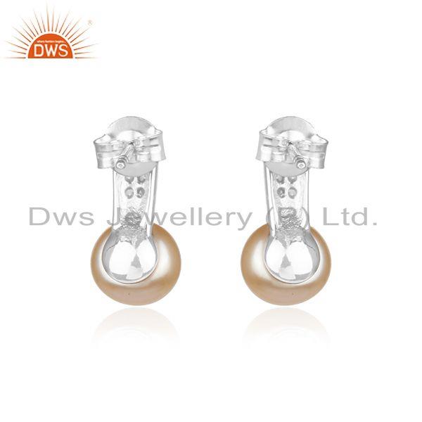 White Rhodium Plated 925 Silver Natural Pearl Gemstone Stud Earrings