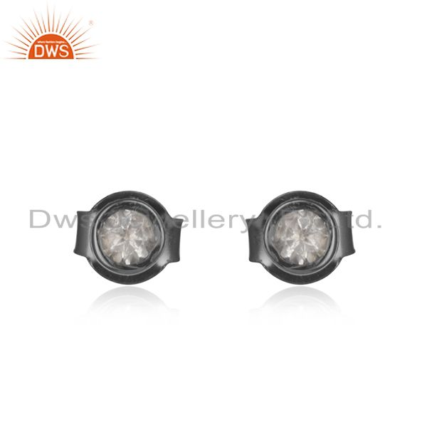 White Topaz Black Rhodium Plated Silver Tinny Stud Earrings Jewelry