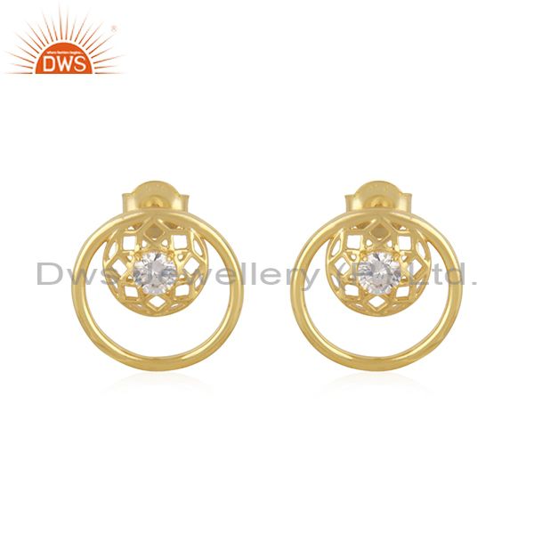 White Zircon Designer 925 Silver 14K Yellow Gold Plated Stud Earring Manufacture