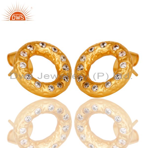 White Zircon Round Gold Plated Brass Fashion Stud Earrings Wholesale