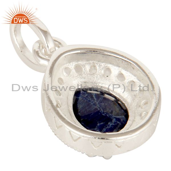 925 Sterling Silver Blue Corundum And White Topaz Gemstone Drop Pendant