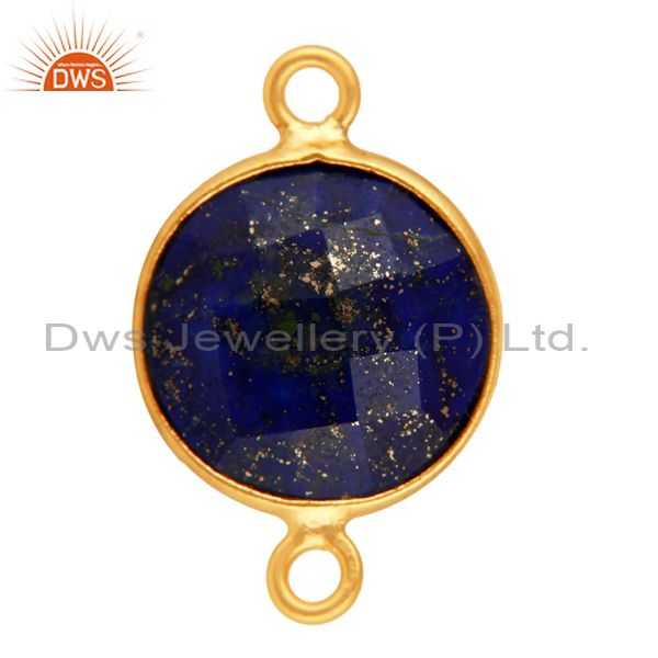Faceted Lapis Lazuli Gemstone Gold Plated Sterling Silver Connector Jewelry