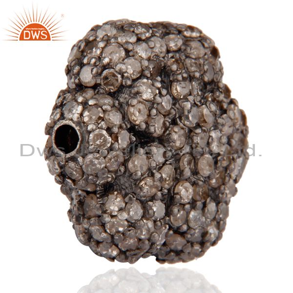 Sterling Silver Disc Connector Diamond Pave Flower Design Finding Beads Jewelry