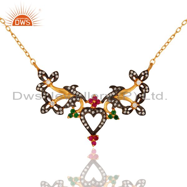 18K Gold Over 925 Sterling Silver Color Cubic Zirconia Designer Chain Necklace