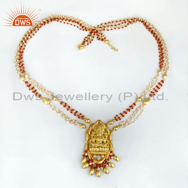 18K Gold Plated 925 Sterling Silver Handmade Pear Bead Temple Necklace Jewelry