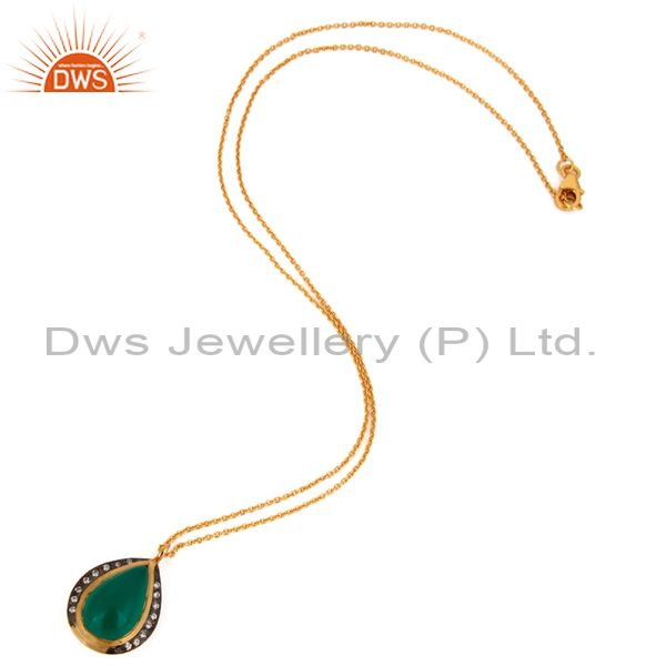 18K Gold Plated Over 925 Sterling Silver Green Onyx Pendant Necklace With Chain