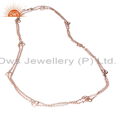 18K Rose Gold Plated Sterling Silver Peace Sign Link Chain Necklace Jewelry