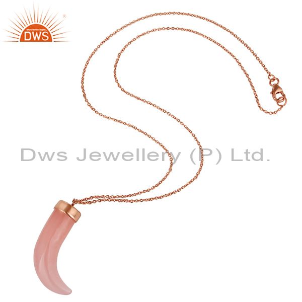 18K Rose Gold Plated Sterling Silver Rose Chalcedony Ox Horn Pendant Necklace