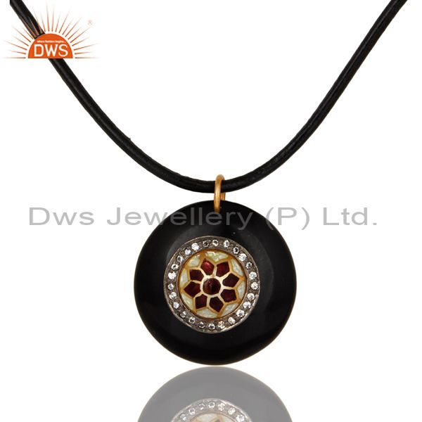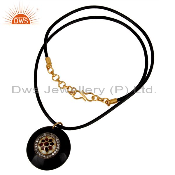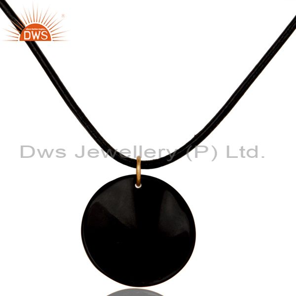 18K Yellow Gold Plated Sterling Silver Black Bakelite Pendant With Cord Necklace