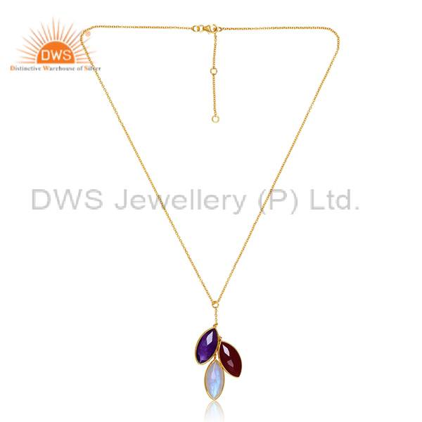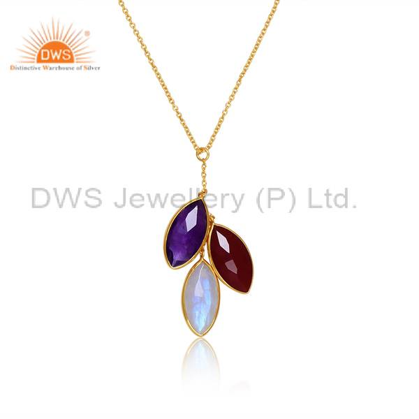 Amethyst, Carnelian And Rainbow Moonstone Necklace