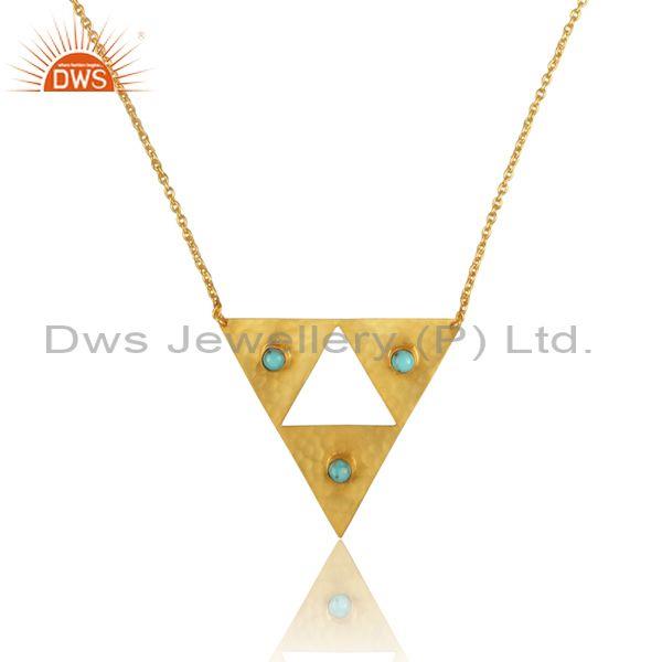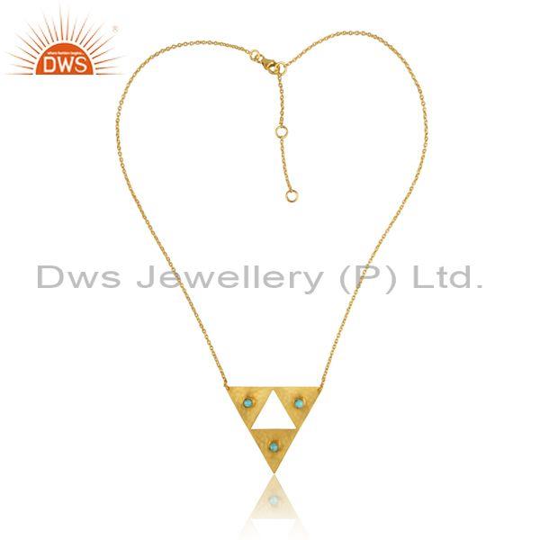 Arizona Turquoise Triangular Pedant And Gold On Silver Chain