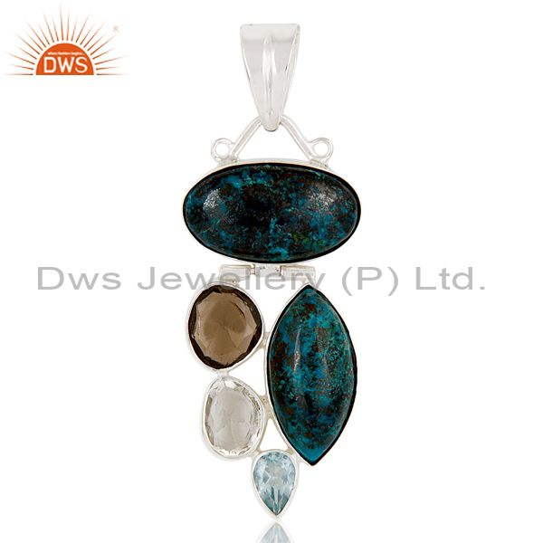 Blue Topaz, Chrysocola, Amethyst & Smokey Topaz 925 Sterling Silver Pendant