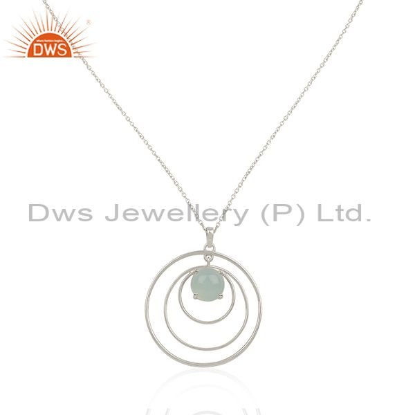 Chalcedony Gemstone Fine 925 Silver Circle Chain Pendant Manufacturer India
