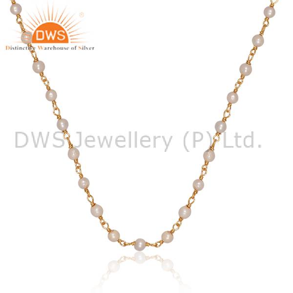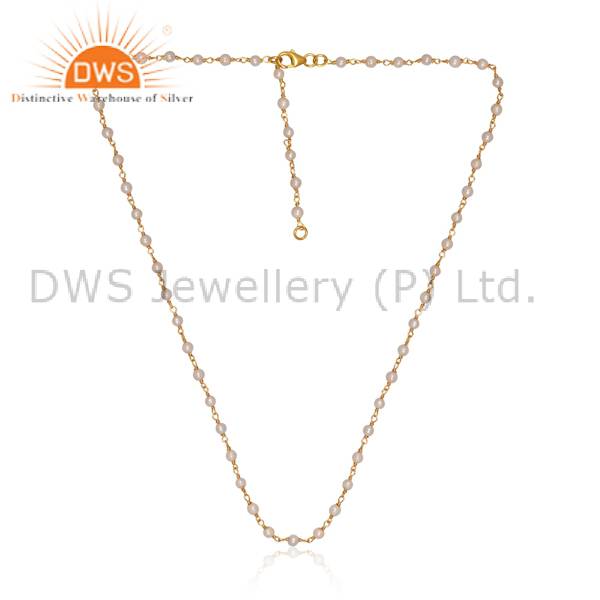 Chic Gold Plated Silver Necklace With Dainty Chain Beads