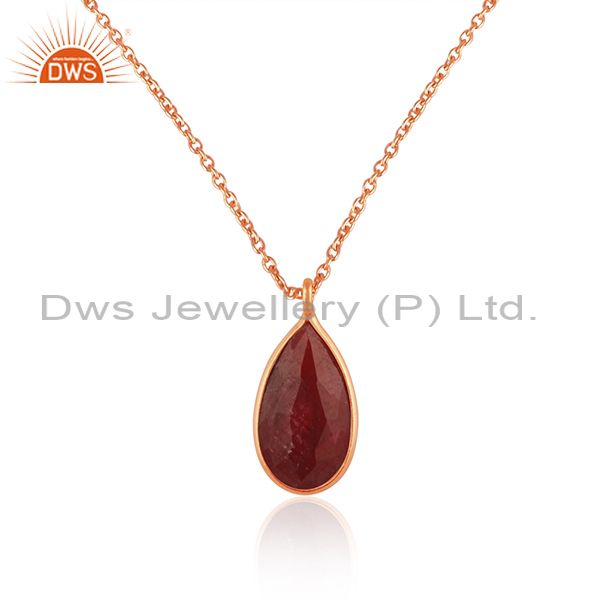 Corundum Ruby Gemstone Rose Gold Plated 925 Silver Chain Pendant Wholesale