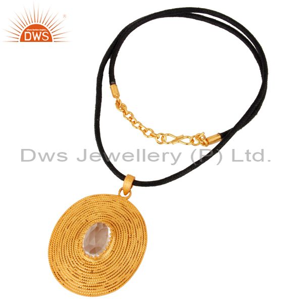 Crystal Quartz Sterling Silver Twisted Wire Pendant 18K Gold Plated Jewelry