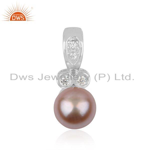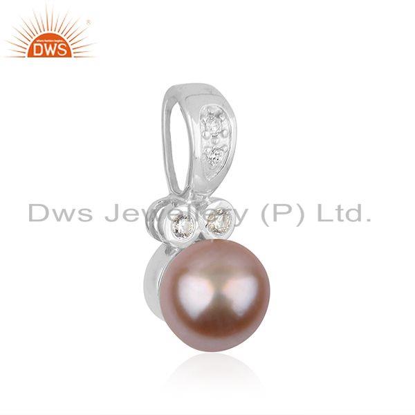 Cz Gray Pearl Gemstone Silver White Rhodium Plated Pendant Jewelry