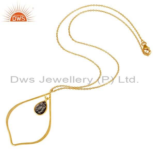Designer 18K Gold PLated Sterling Silver Pendant ChainNecklace Routile
