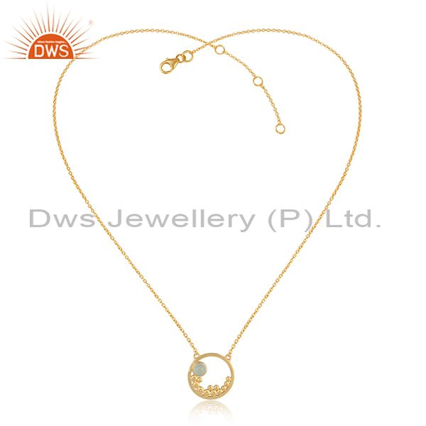 Designer Zig Zag Granule Aqua Chalcedony Necklace In Gold On Silver