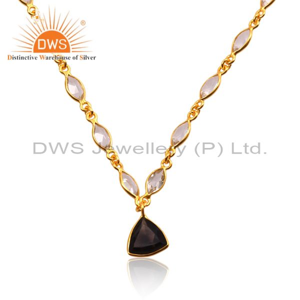 Elegant Green Amethyst And Smoky Quartz Necklace