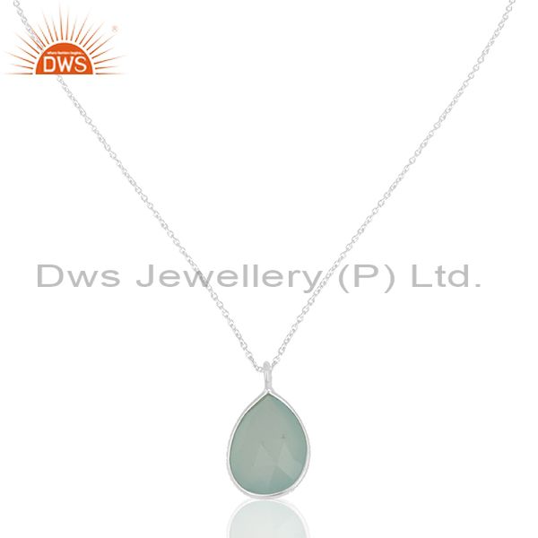 Fine Silver Aqua Chalcedony Gemstone Girls Pendant Manufacturers