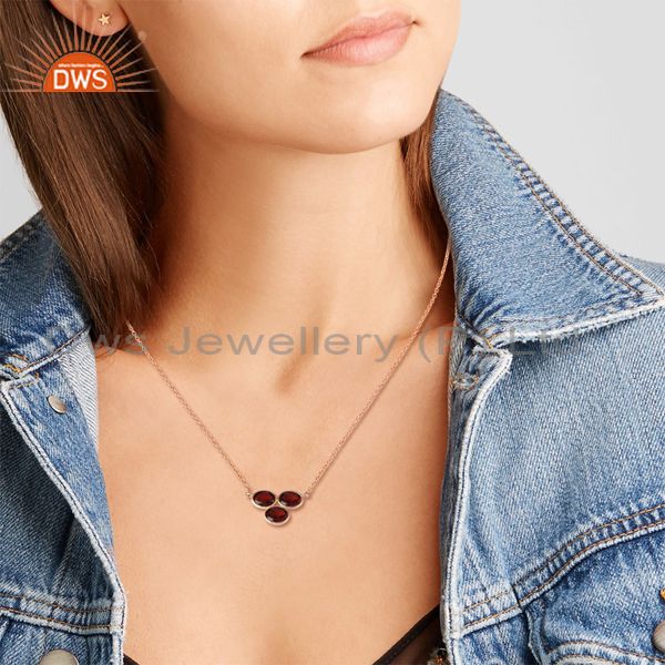 Garnet Gemstone Rose Gold Plated Designer Silver Pendant Necklace