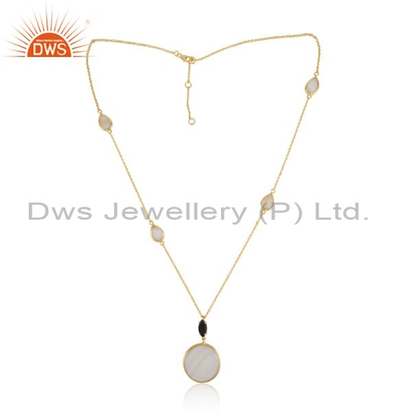 Gold On Silver Necklace With Mother Of Pearl Green Onyx
