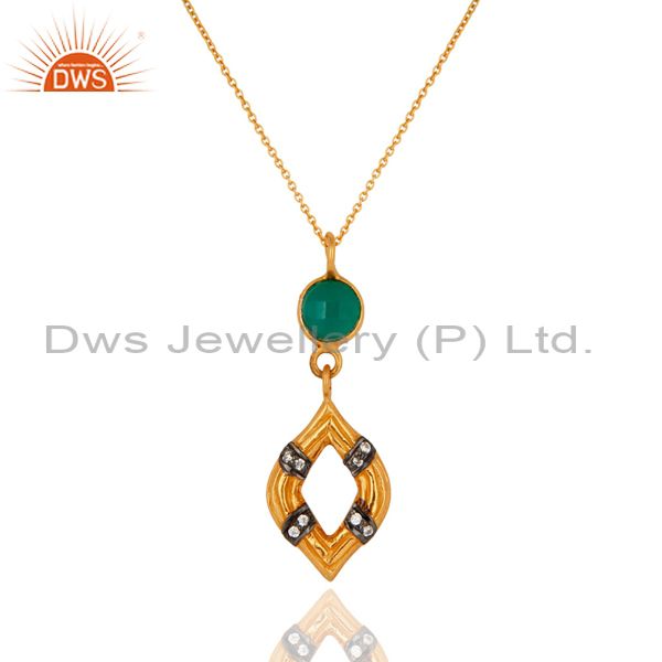 Gold Plated Sterling Silver Gemstone Designer Pendant With Green Onyx & Zircon