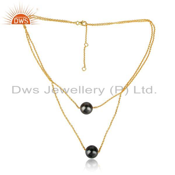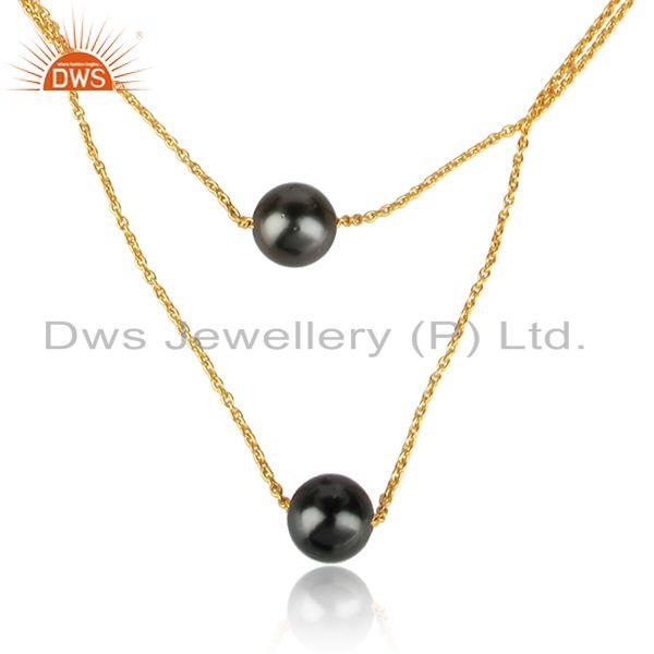 Gray Pearl Gemstone Designer 18K Gold Plated Silver Chain Necklace