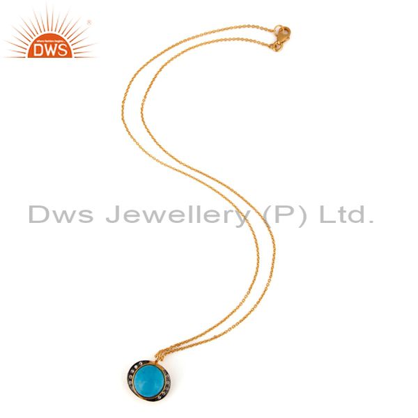 Handcrafted Turquoise Gemstone 925 Sterling Silver Gold Plated Pendant Jewelry