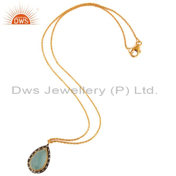 Handmade Blue Aqua Glass Gemstone 925 Sterling Silver Designer Pendant With Cz