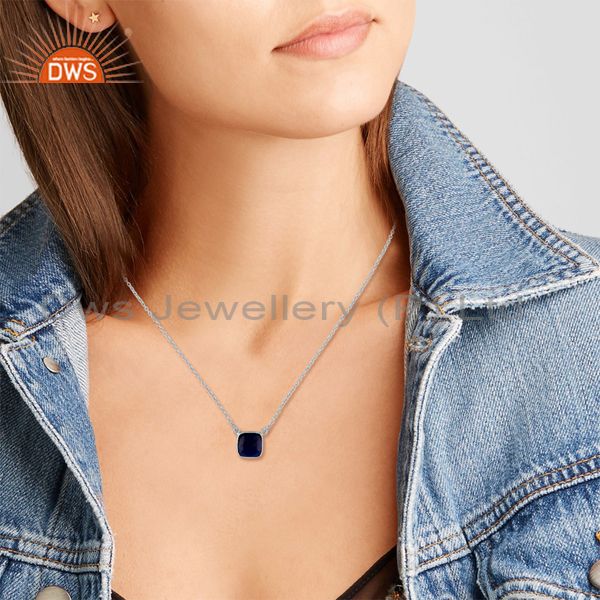 Handmade Dainty Necklace In Silver 925 Adorn With Blue Corundum