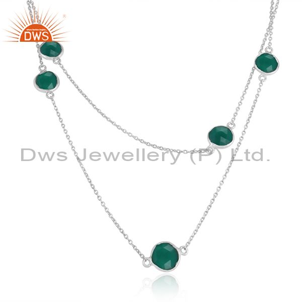 Handmade Sterling Silver Long Necklace With Green Onyx