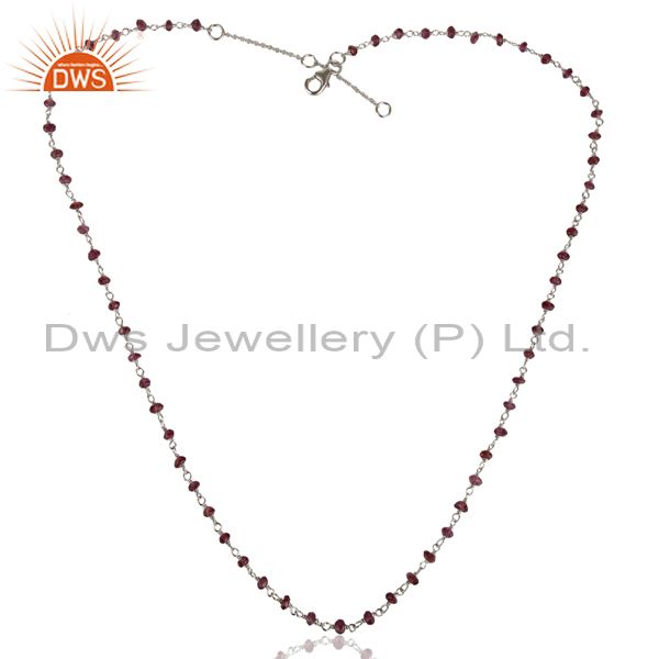 Handmade White Rhodium 925 Sterling Silver Amethyst Beads Necklace Jewelry