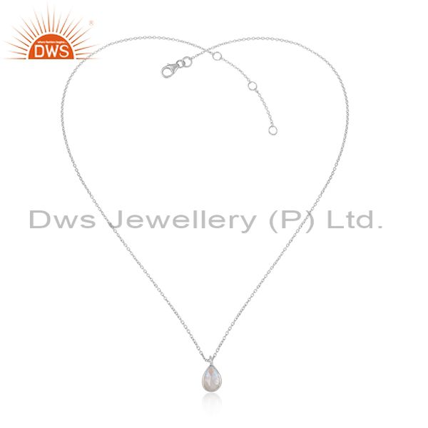 Indian Solid 925 Sterling Silver Rainbow Moonstone Chain Pendant Necklace