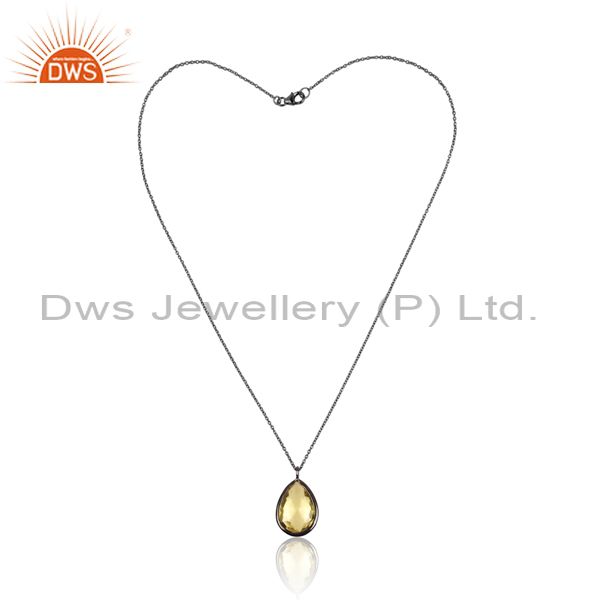 Lemon Topaz Set Black On Silver Fancy Pendant And Necklace