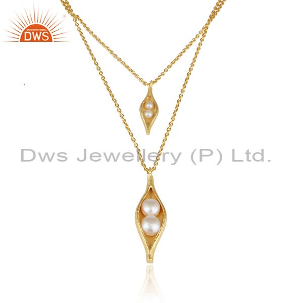 Multi Row Seedpod Pearl Necklace in Yellow Gold on Silver 925