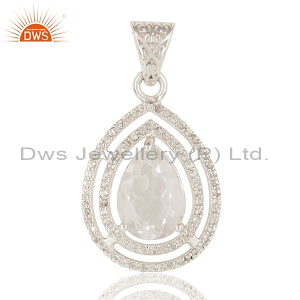 Natural Crystal Quartz And White Topaz Sterling Silver Prong Set Gemstone Penda