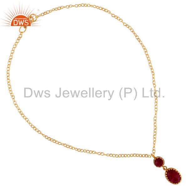New 24K Gold Plated Dyed Ruby Gemstone Birthstone Pendant Jewelry Chain Necklac