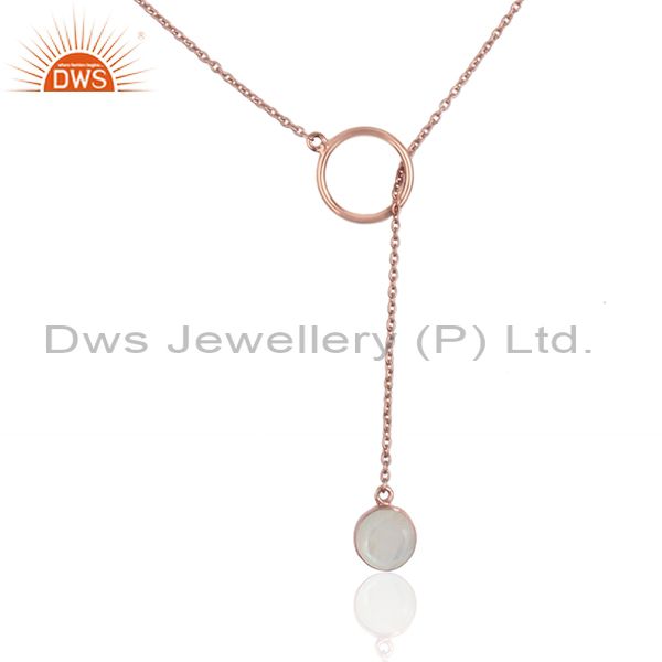 Rainbow Moonstone Rose Gold Plated 925 Silver Chain Necklace