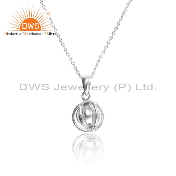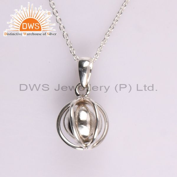 Silver Metal Pearl Cage Pendant Necklace For Women