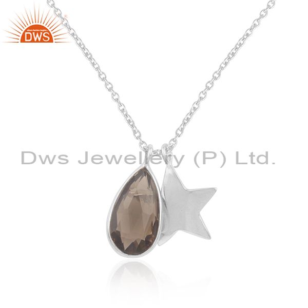 Smoky Quartz Gemstone Star Charm 925 Silver Handmade Pendant Supplier