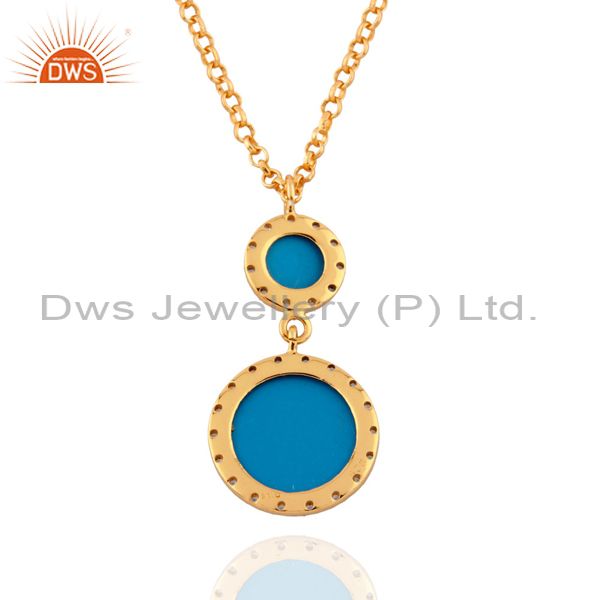 Turquoise Gemstone Sterling Silver Pendant White Topaz 24" Gold Plated Necklace