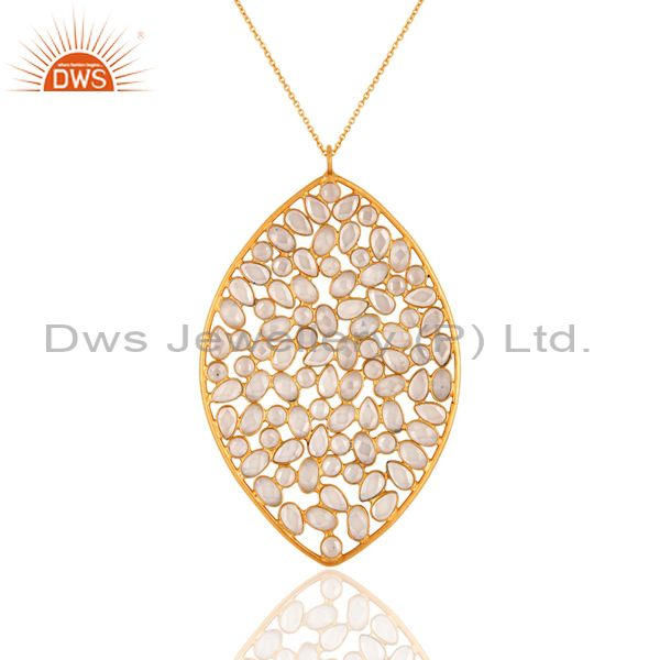 White Cubic Zirconia Yellow Gold Plated Sterling Silver Pendant With Chain