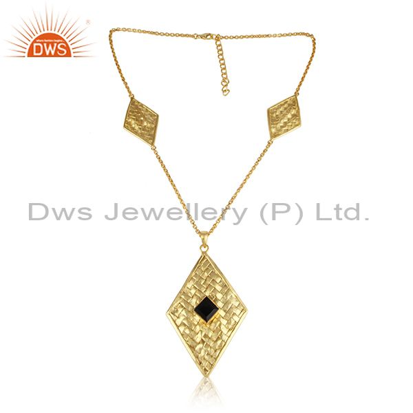 Woven Black Onyx Set Pendant Set Gold On 925 Silver Chain